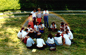 Sateenkaari-ilmiö ilmestyi tässä opintopiiristä otetusta valokuvassa. Kuva on alkuperäinen, ei kuvakäsitelty.