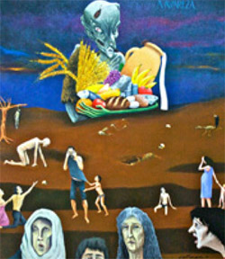 O quadro de Catinari mostra que o avarento priva os outros dos bens que são de todos.